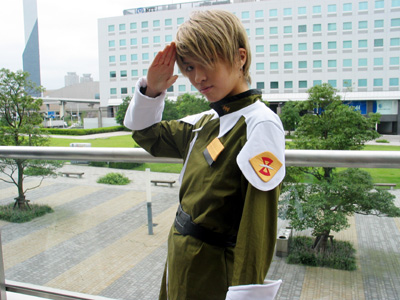 最初のうちに死んでしまったのに、根強い人気のミゲルです。ヒユキさんとは、随分前に某所で種話に花が咲き…ミゲル・コスやってると聞いていたのですが、今回やっと撮影に成功しました。ザフト軍服もバッチリ決まってます。 では、最後は皆さんご一緒に、例のセリフで締めましょう! 「生意気なんだよ!ナチュラルがモビルスーツなど!」