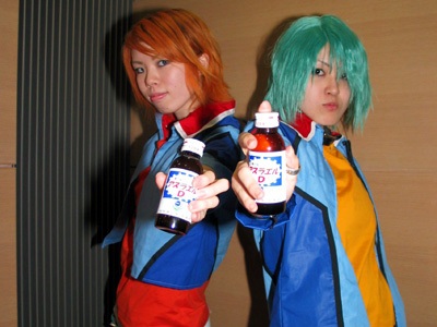 γ-グリフェプタン10単位含有!戦闘前に、この一本! …ということで、またネタ写真やってしまいました。戦闘激化に伴い財政が厳しくなった連合軍が、あの薬の市販に踏み切ってしまった…という状況です。ナルシストっぽいアズラエル氏のことですから、薬にも自分の名前付けるのではないかと…一発ギャグの割には、設定考えてます。 出演 撮影・構成・小道具 2003.09.07. |