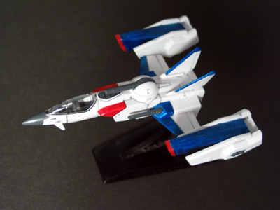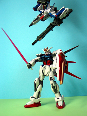 メビウス・ゼロと抱き合わせ(笑)のスカイグラスパーです。地色の白を活かした部分塗装です。メタリックブルー、メタリックレッド、グレー、黒などを使っています。 これを作ったからには、ストライカーパックを組み替えて、いろいろ遊びたいところですが…。接合部がけっこうキツくて、パーツの差し替えは困難です。子供にやらせたら、すぐにパーツ壊しそう…実は大人のおもちゃだっていうことですかねぇ。