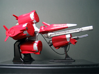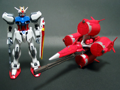| 【TS-MA2mod.00 メビウス・ゼロのひと言】 あたくしが、連合軍主力MAメビウスの中でも特に有名な…メビウス零式でございます。一度の戦闘で5機のジンを落とさせていただきました。ちなみにこの頃、ジンとメビウスの戦力比は5:1と言われていました。はい、あたくし、通常のメビウスの25倍強いのでございますよ。 |